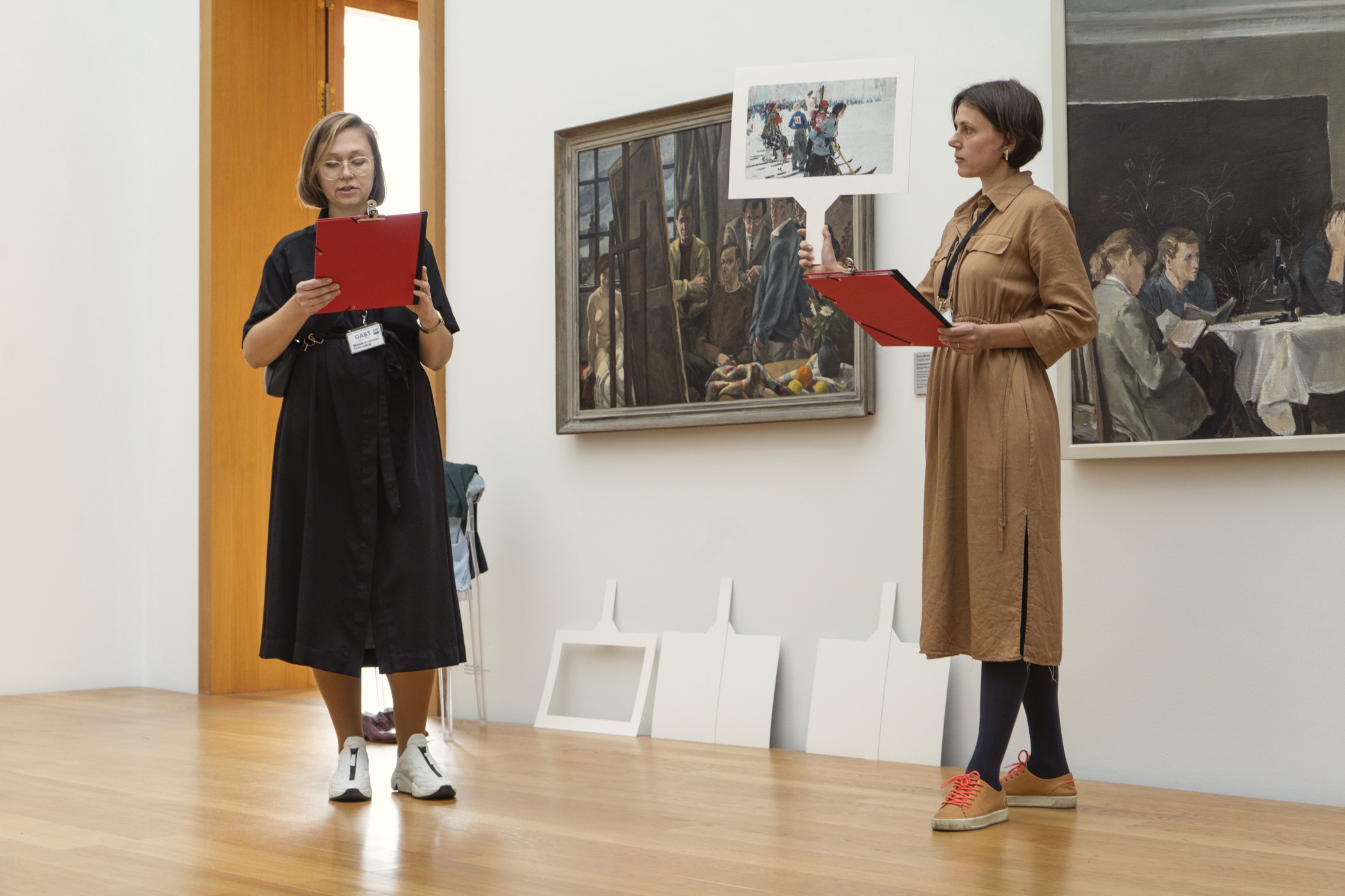 Guided tour - performance - at MdBK Leipzig by Lada Nakonachna and Kateryna Badianova.